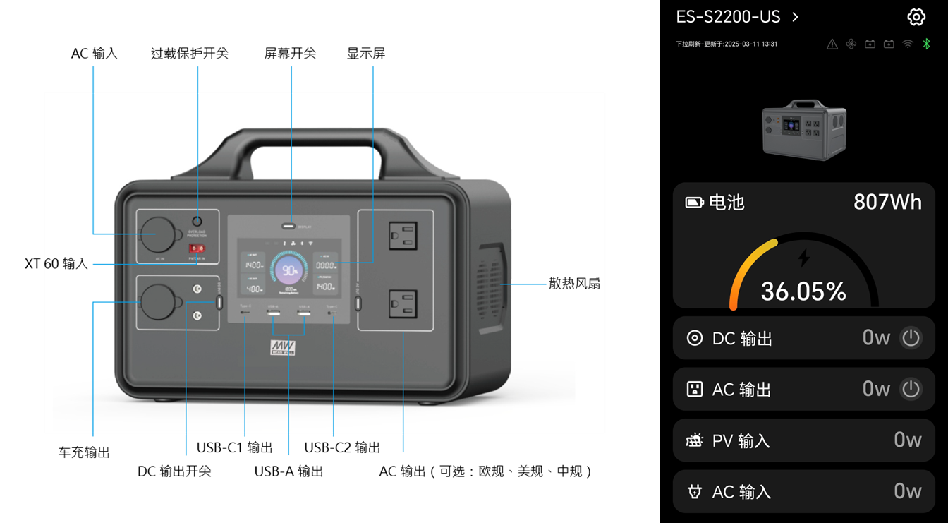 便攜式儲能電源采用行業(yè)領先的磷酸鐵鋰刀片電芯技術,相較于傳統(tǒng)電芯,具有更高的能量密度和更長的使用壽命,充放電循環(huán)次數可達4000+;BMS電池管理系統(tǒng)支持過充、過放、短路、高溫…等多重防護,確保用戶在各種環(huán)境下都可安全使用;產品配有AC/DC充電接口,具有太陽能板充電、市電充電、車載充電等多種充電方式,配備USB、DC、AC(中國插、歐插、美插可選)、汽車點煙器等多個常用電源輸出接口,另外產品具備WIFI、藍牙通訊,可通過APP遠程查看設備狀態(tài),在使用上更加靈活和便捷,可以為筆記本電腦、無人機、攝影燈、投影儀、電風扇、燒水壺及汽車…等設備提供穩(wěn)定而可靠的電力支持,滿足多場景的用電需求,讓你隨時隨地,電力無憂。