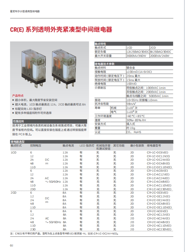 霍尼韋爾 CR(E) 系列透明外殼緊湊型中間繼電器