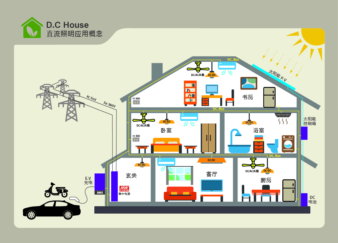 由于再生能源已是未來(lái)發(fā)展趨勢(shì),因此DC House不再只是一個(gè)概念,而是必要的基礎(chǔ)設(shè)施。因此,如何提高電力轉(zhuǎn)換效能在交流電轉(zhuǎn)換直流電,或直流電轉(zhuǎn)換交流電都是不可忽視的議題。明緯將以此為出發(fā)點(diǎn),引領(lǐng)成為直流供電室內(nèi)應(yīng)用先驅(qū),定義新的直流集中供電照明應(yīng)用方式,以達(dá)到降低功率轉(zhuǎn)換過(guò)程的損失。