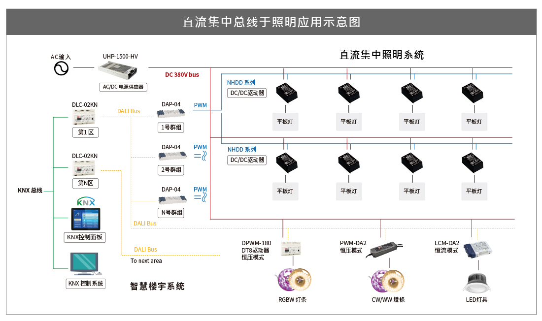 憑借超過(guò)35年的電源設(shè)計(jì)和制造經(jīng)驗(yàn),我們定義新的直流集中供電和直流照明應(yīng)用方式,可提供機(jī)殼型與DC/DC LED驅(qū)動(dòng)器的完整解決方案。此外,直流集中供電可輕松整合到再生能源系統(tǒng)中,以降低電源轉(zhuǎn)換損失及結(jié)合儲(chǔ)能系統(tǒng)(ESS)的使用方式。如此才能達(dá)到一個(gè)完整的“直流世界”應(yīng)用,請(qǐng)參考下圖。