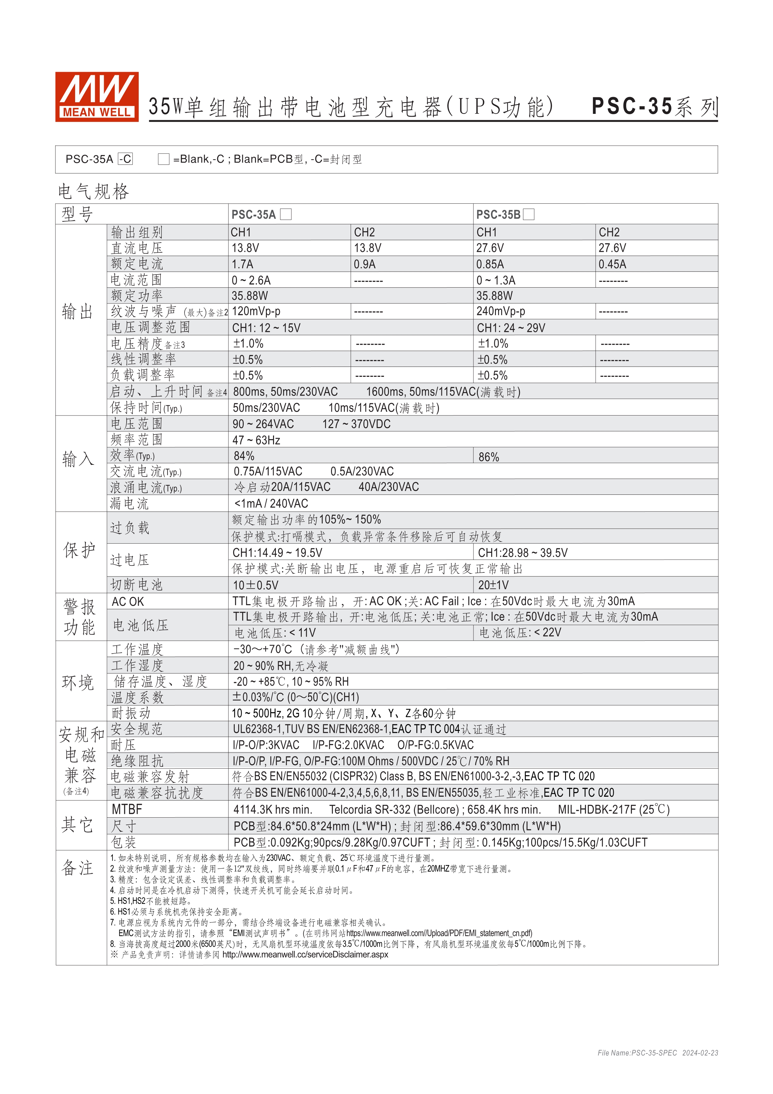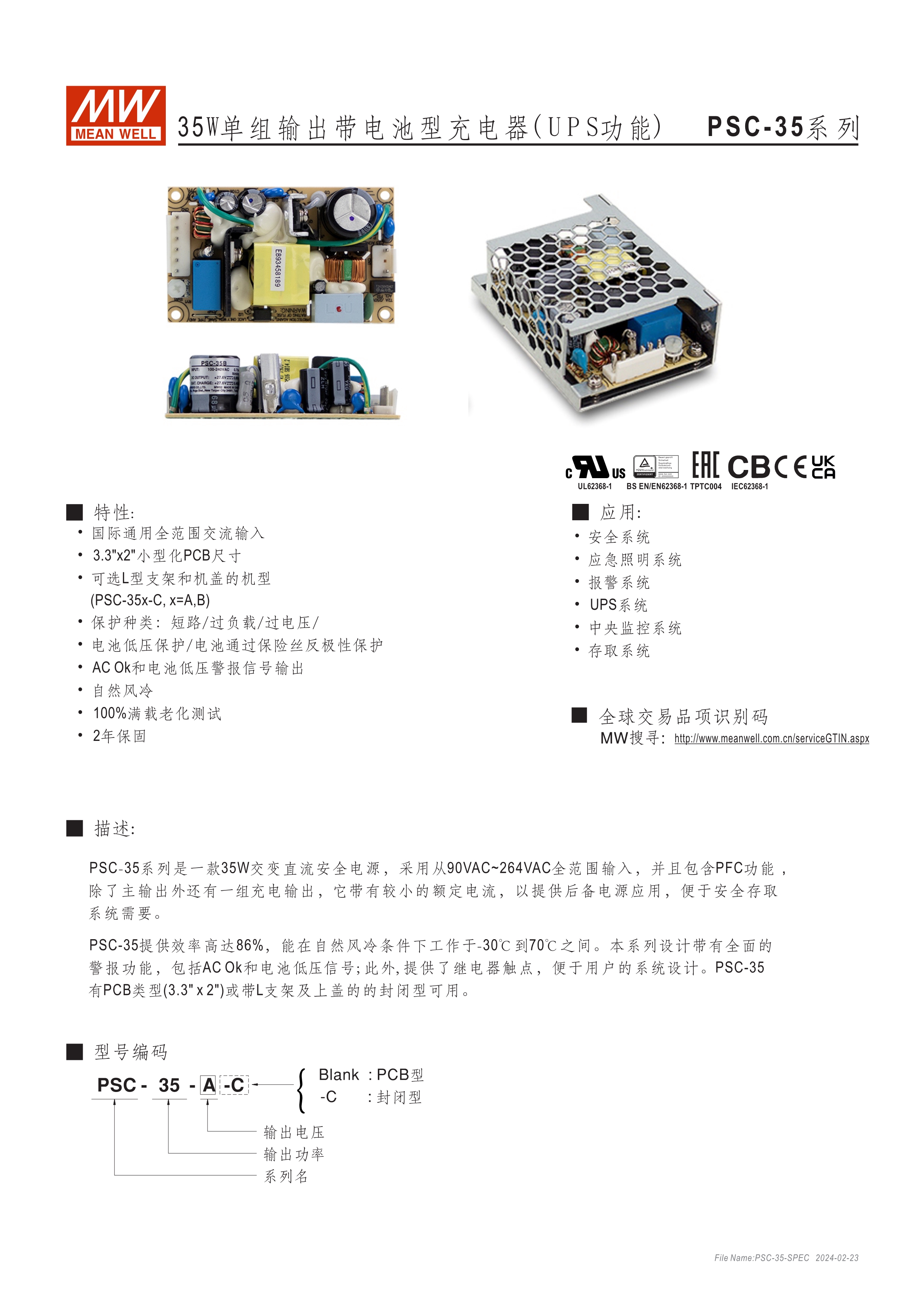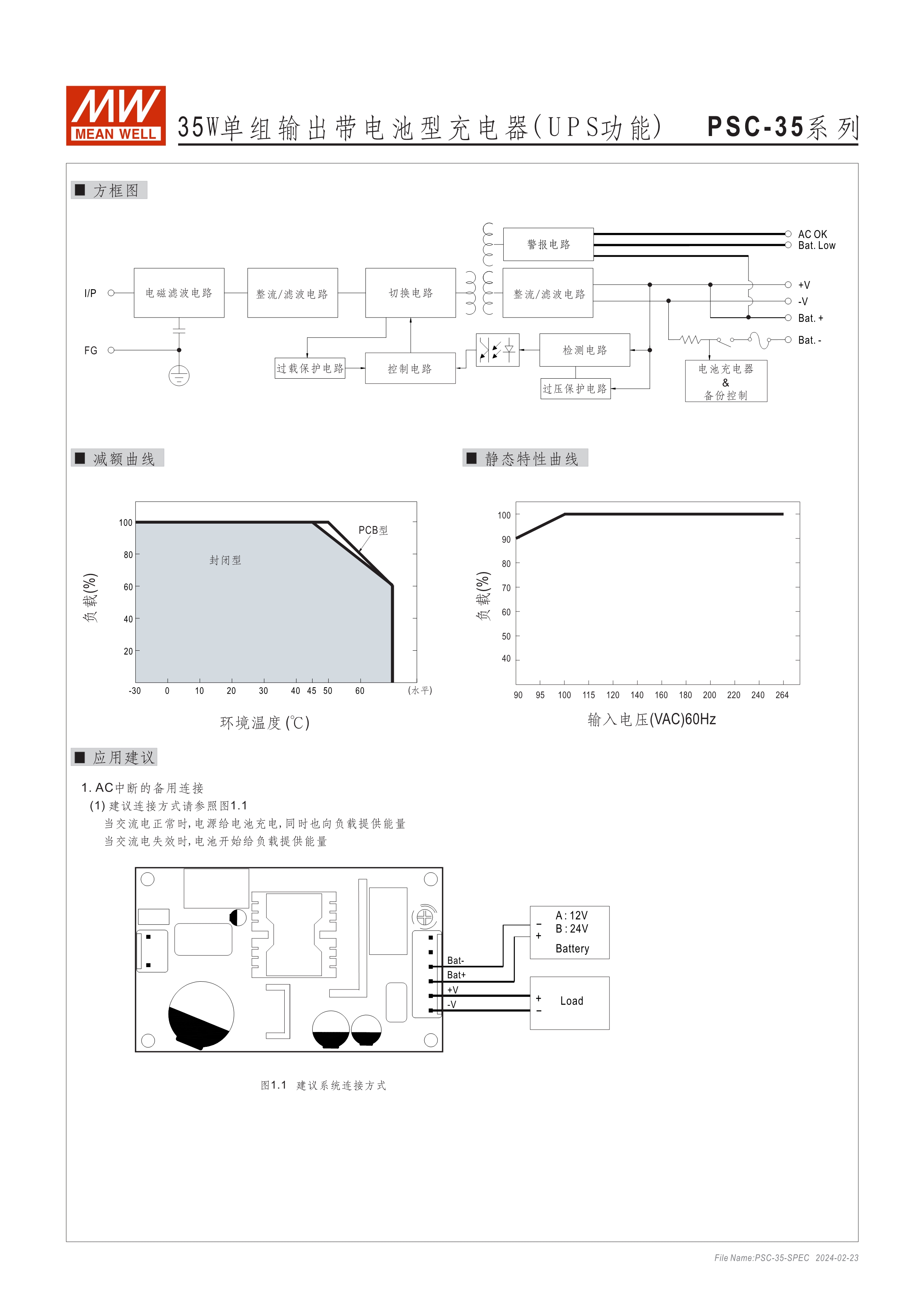 具UPS 功能(需外接電池) 適合用于安全監(jiān)控設備或各式電池備援系統(tǒng) PSC-160內(nèi)建主動式功率因子矯正功能(active PFC) 亦可提供機殼型