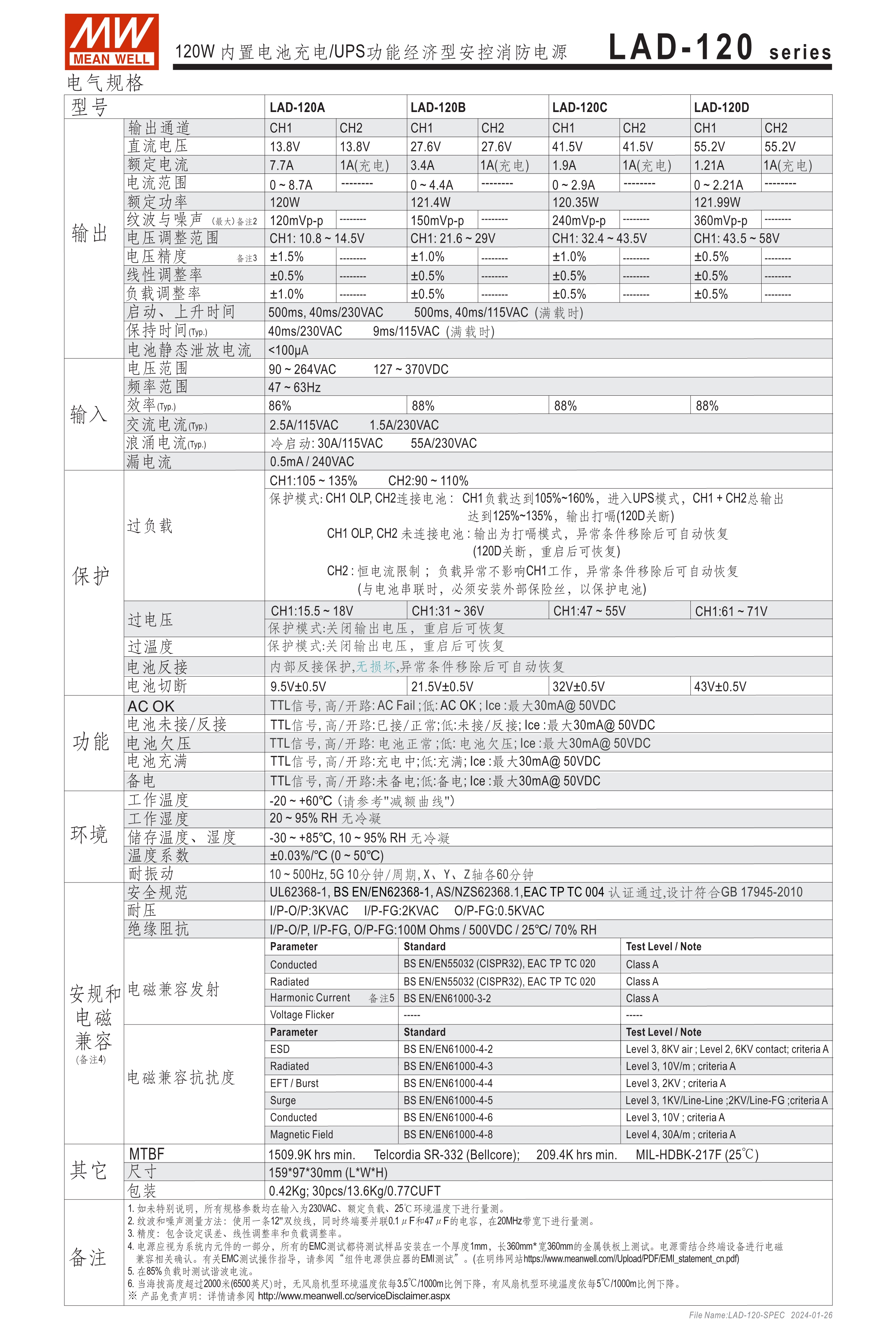 AD/ADD系列具UPS功能(需外接電池) LAD系列具UART通訊功能,可透過主、備電迴路開關(guān)控制,並符合GB 17945-2010安全規(guī)範(fàn) 適合用于安全監(jiān)控設(shè)備或各式電池備援系統(tǒng)