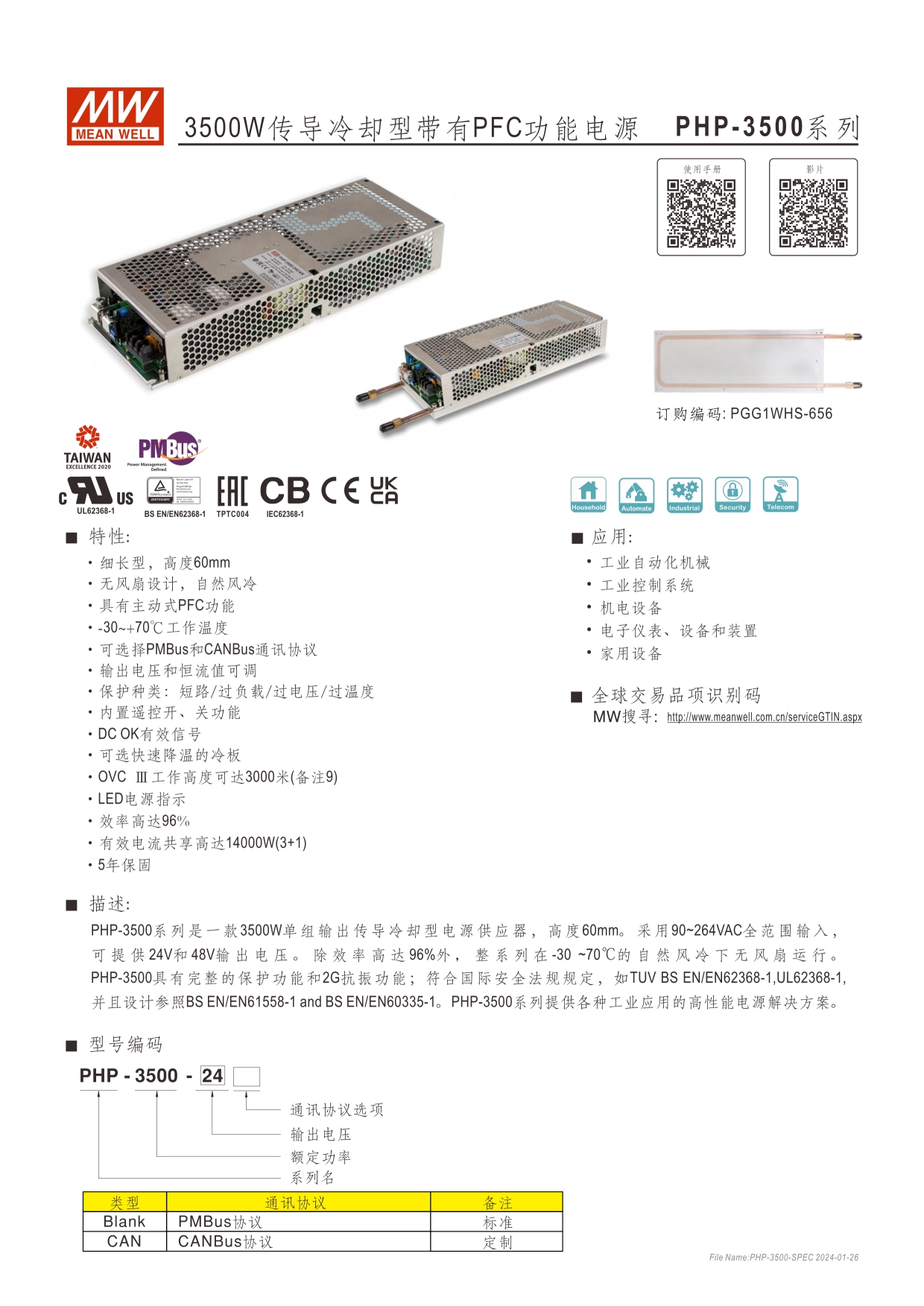 水冷散熱設(shè)計(jì) 可程序化輸出功能: 輸出電壓與輸出電流恒流點(diǎn)可調(diào)整 支持PMBus通訊協(xié)議 (可選配CANBus協(xié)議) 支持輸出并聯(lián)功能 HV款式為高壓輸出機(jī)型 主動(dòng)式均流設(shè)計(jì),系統(tǒng)電力高可達(dá)14000W (3+1) 可選購(gòu)水冷板,ordering no.: HS-656