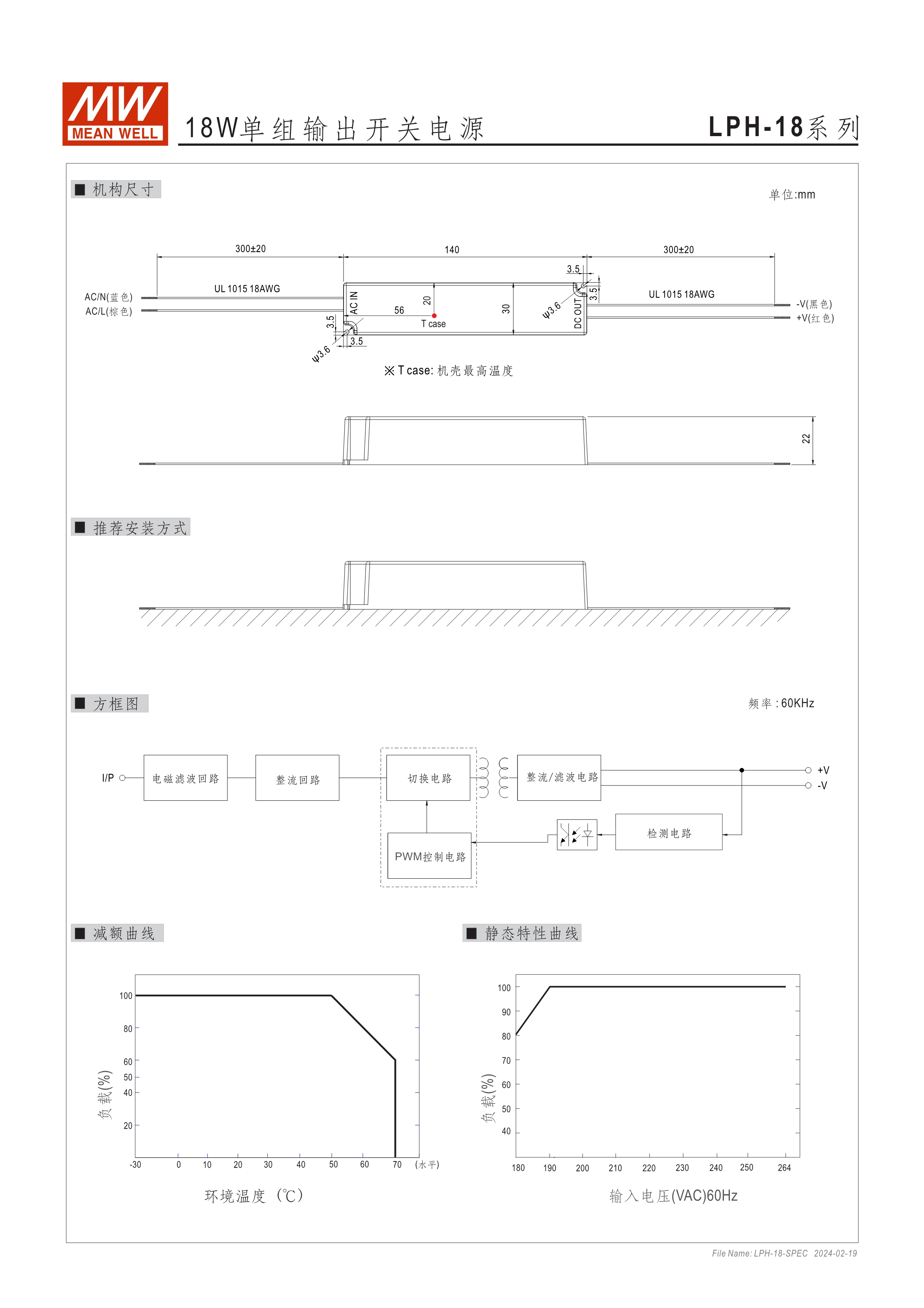 90~264VAC 交流輸入 (18W及150W除外) 長(zhǎng)條型塑料外殼,IP67防護(hù)等級(jí) 經(jīng)濟(jì)型系列 可承受300VAC突波輸入達(dá)5秒(LPV/C-20/35/60/100) -30~70℃寬工作環(huán)溫范圍 Type "HL" LED電源適用在安裝于Class I, Division 2 類 危險(xiǎn)地點(diǎn)之照明燈具(僅LPVL-150) 適合于經(jīng)濟(jì)型LED照明及LED電子廣告牌相關(guān)應(yīng)用