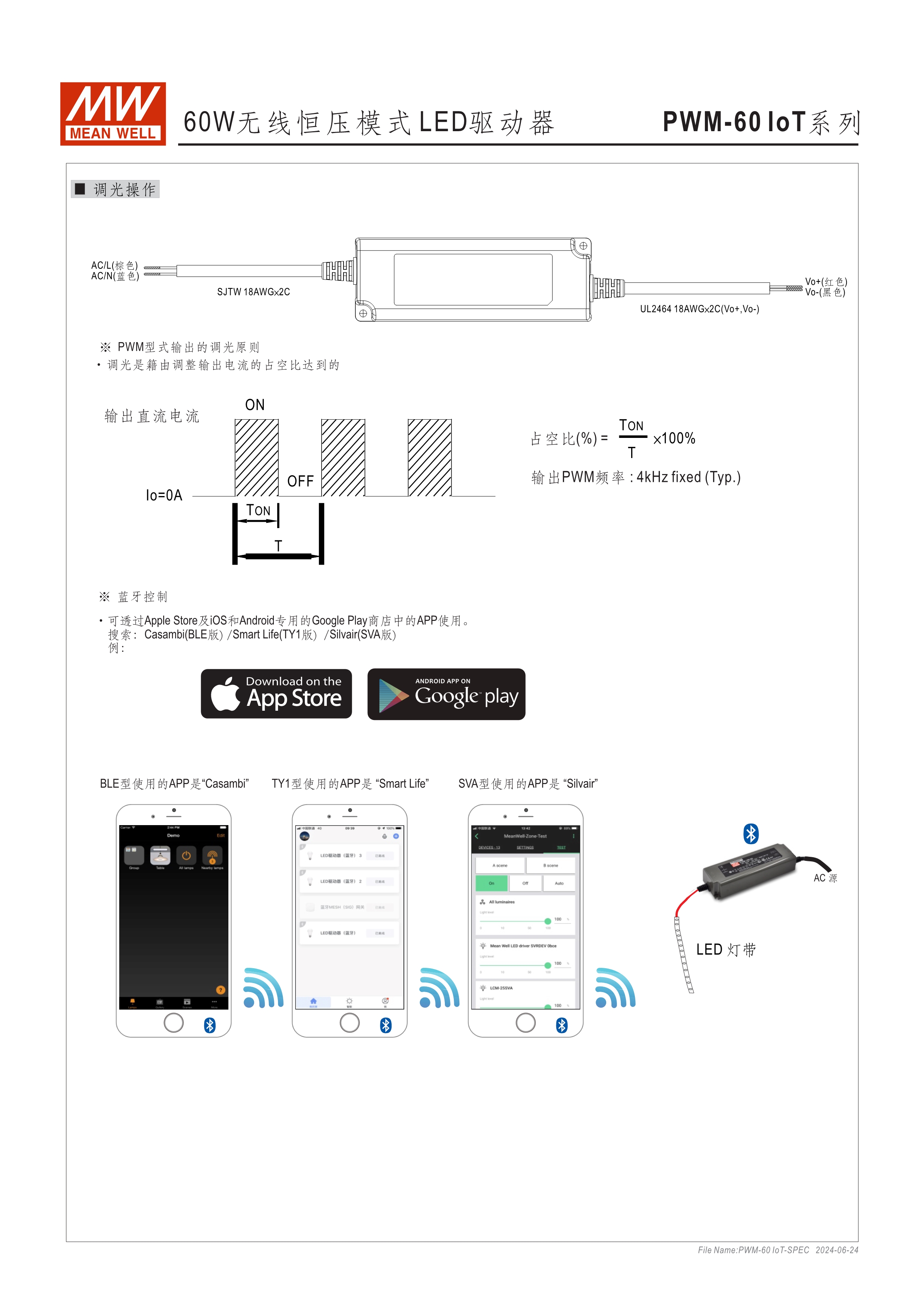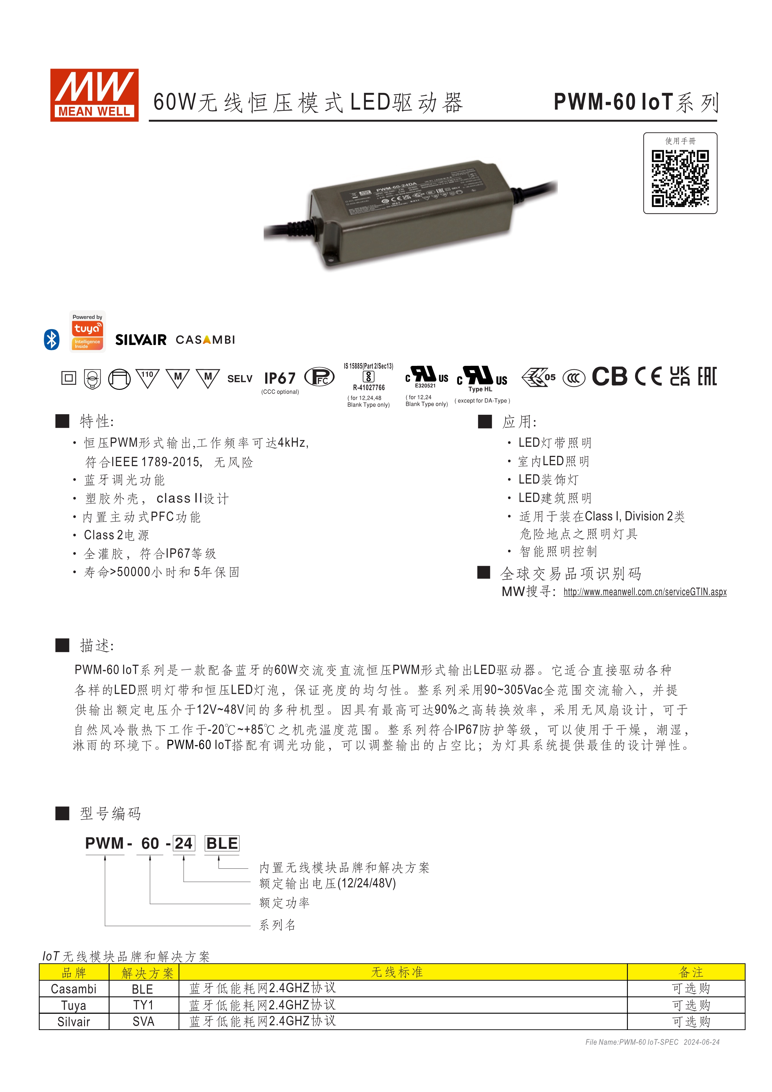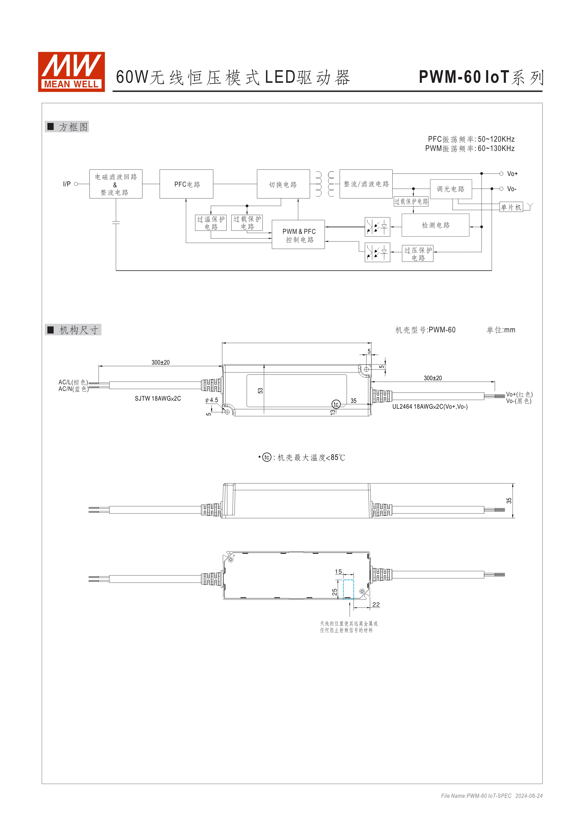 恒壓輸出模式多種可選 (PWM系列) 無頻閃設(shè)計 塑料外殼及符合Class II無地線設(shè)計 主動式PFC設(shè)計 雷擊保護(hù)耐壓設(shè)計2KV(L-N) 保護(hù)功能:短路、過電壓、過溫度