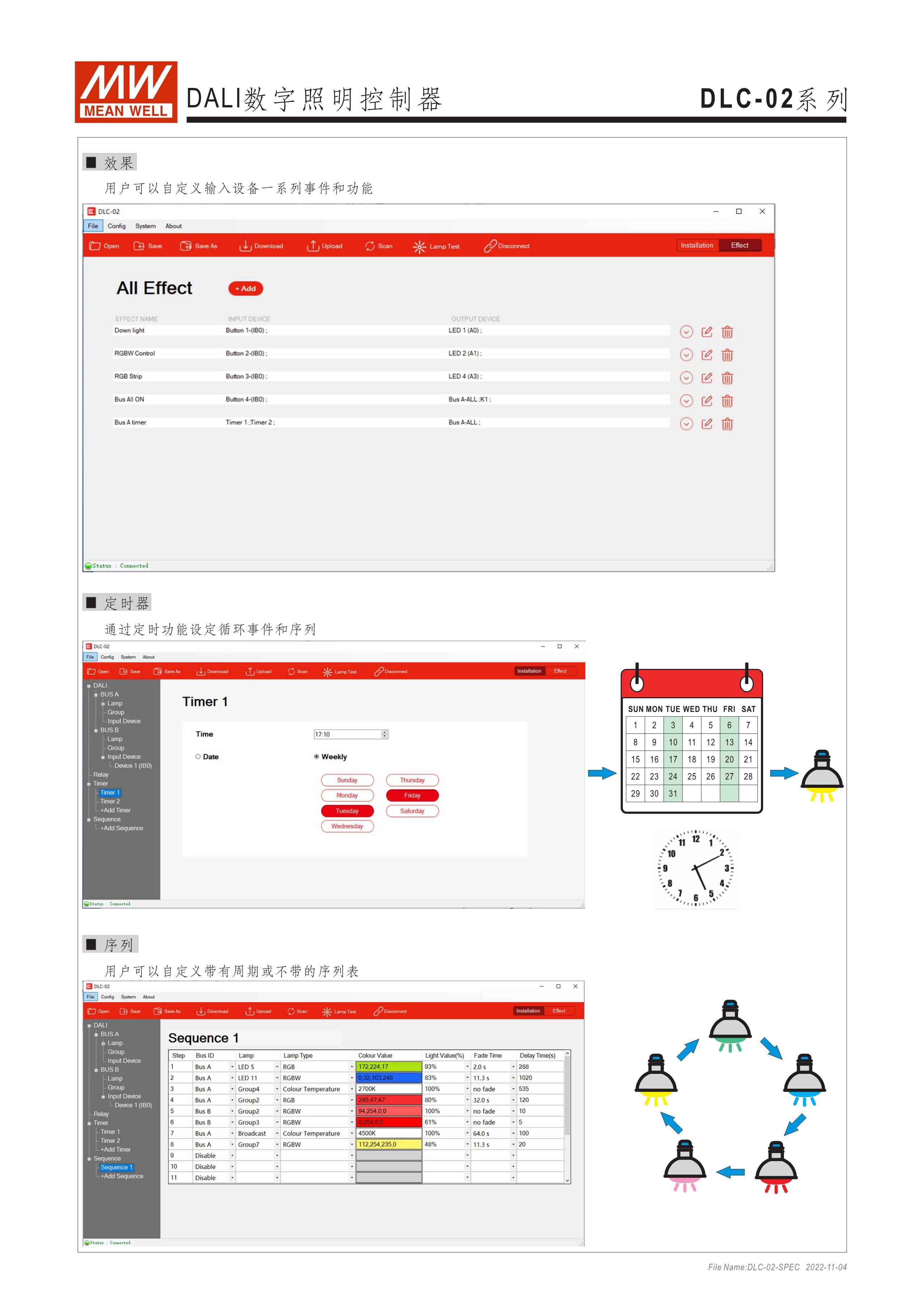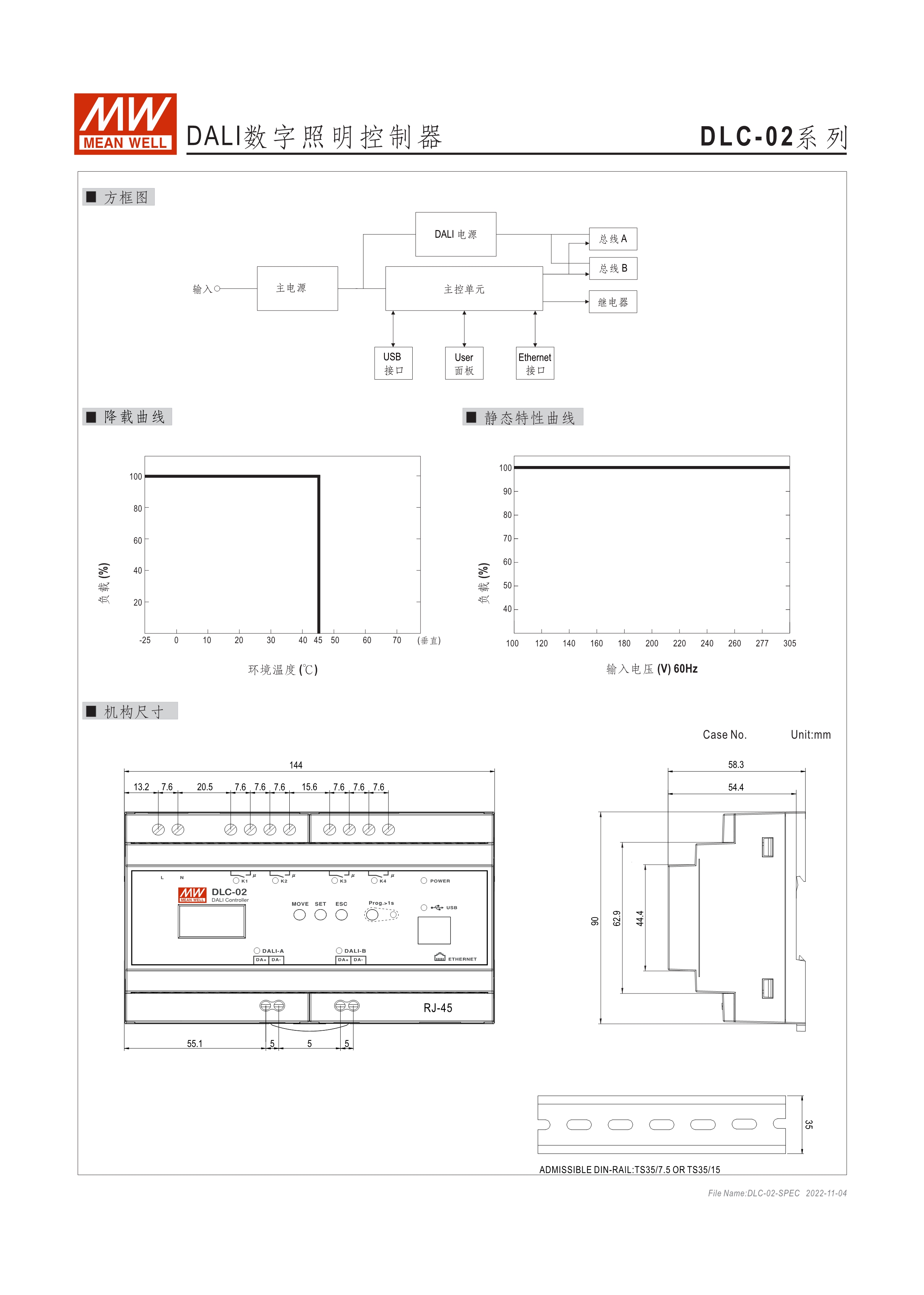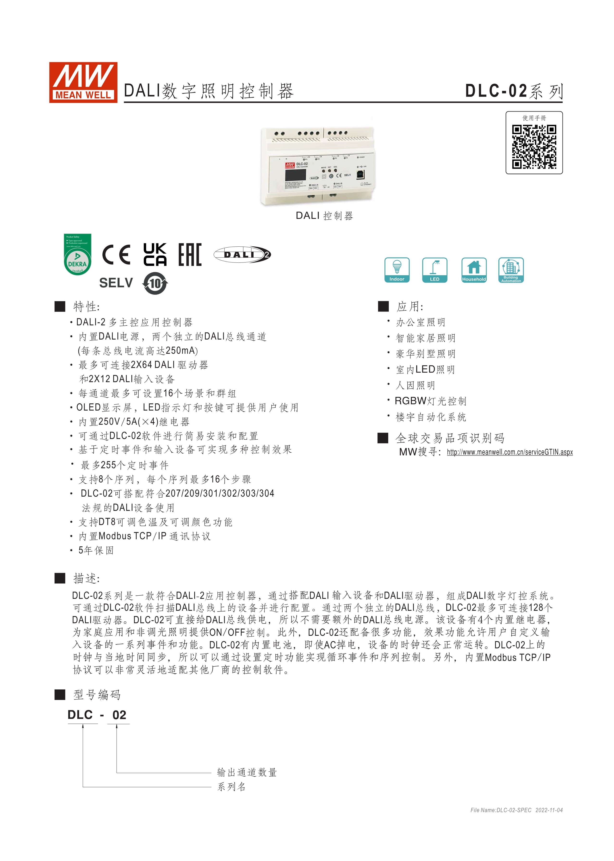 符合IEC 62386 DALI-2,Part 101/103/207/208/301/302/303/304標(biāo)準(zhǔn) 2組獨(dú)立DALI總線,可接Control Gear及Control Device搭配使用 4路可控繼電器,接觸容量5A,可當(dāng)電器開關(guān)或兩組電動(dòng)窗簾使用 可搭配DLC軟體做現(xiàn)場(chǎng)系統(tǒng)設(shè)定,或透過網(wǎng)路線從遠(yuǎn)端做修改設(shè)定 透過本體液晶顯示螢?zāi)患安倏匕粹o,可做簡(jiǎn)單設(shè)定和狀態(tài)查詢 內(nèi)建Timer晶片,可搭配DLC軟體做行程控制設(shè)定 通訊介面接口:RJ-45及KNX,可與其他樓宇自動(dòng)化系統(tǒng)做連線擴(kuò)充使用 采導(dǎo)軌式設(shè)計(jì),體積小巧僅8SU寬度(144x 90x 58.4mm)