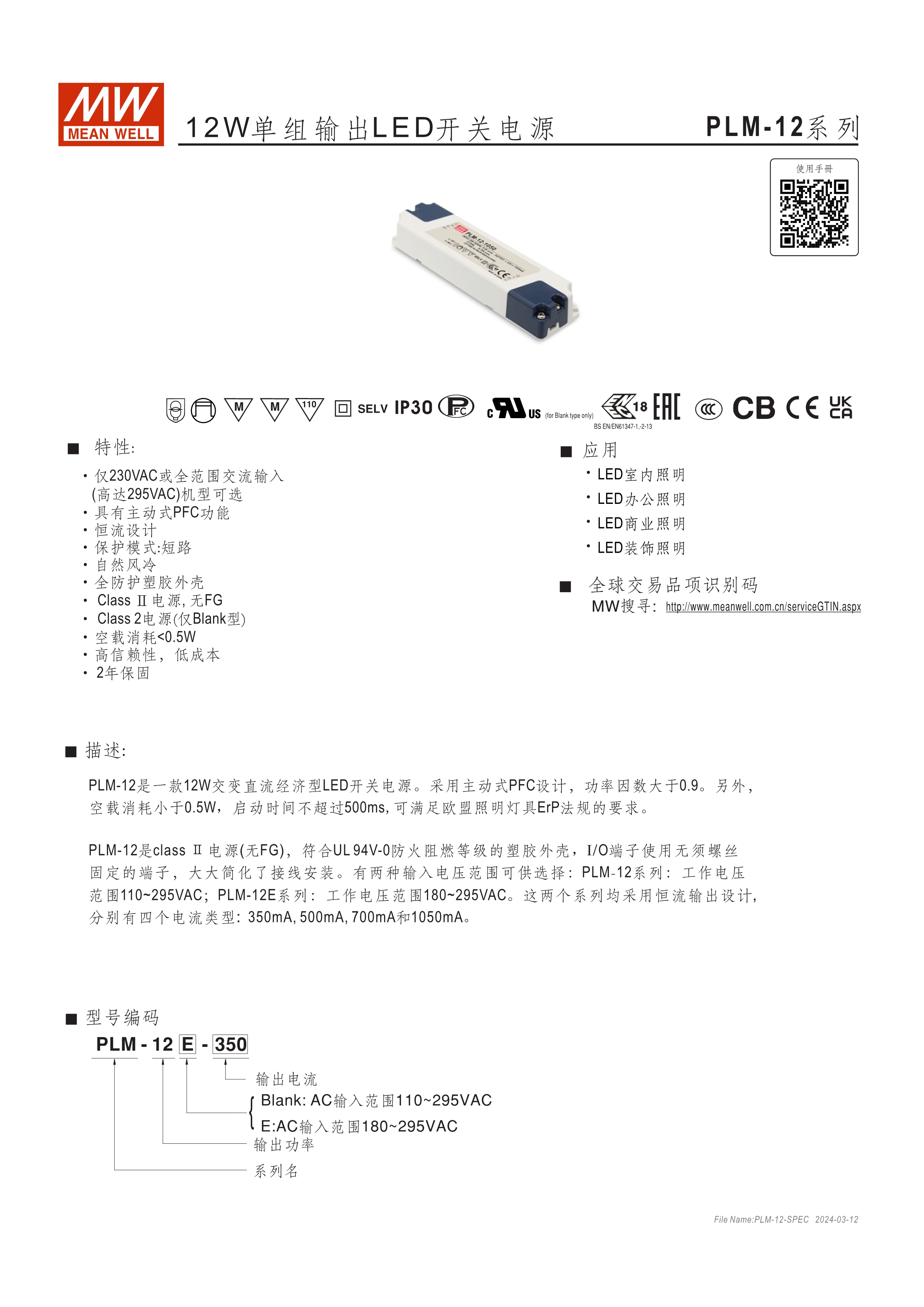 110~295VAC交流輸入 (E型:180~295VAC交流輸入) 內(nèi)建主動(dòng)式功率因子矯正功能 (active PFC) 塑料外殼,IP30防護(hù)等級 Class II設(shè)計(jì),無FG 壓線式輸出/輸入端子臺 恒流設(shè)計(jì) 空載待機(jī)消耗瓦數(shù)<0.5W 適合于LED室內(nèi)照明相關(guān)應(yīng)用