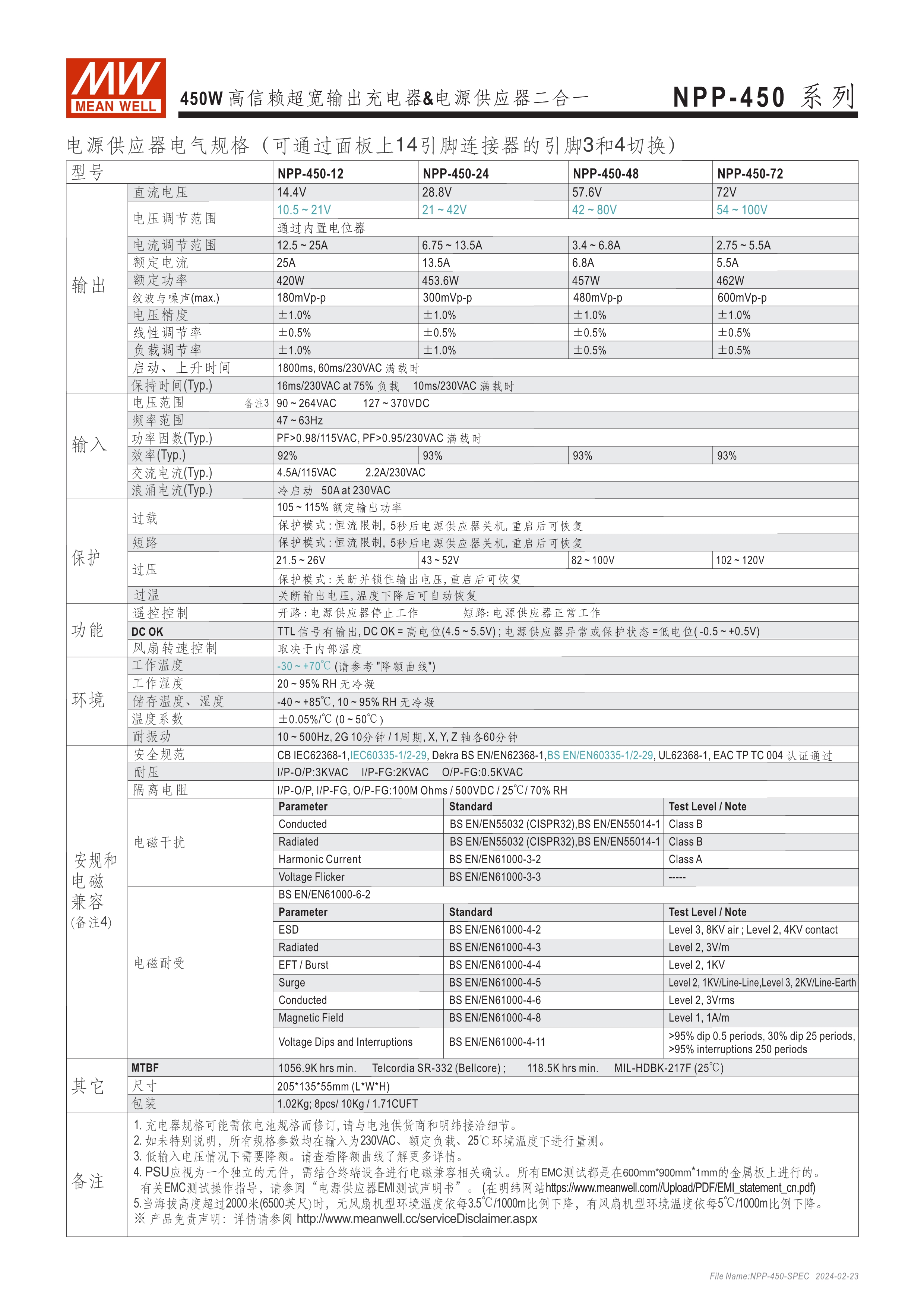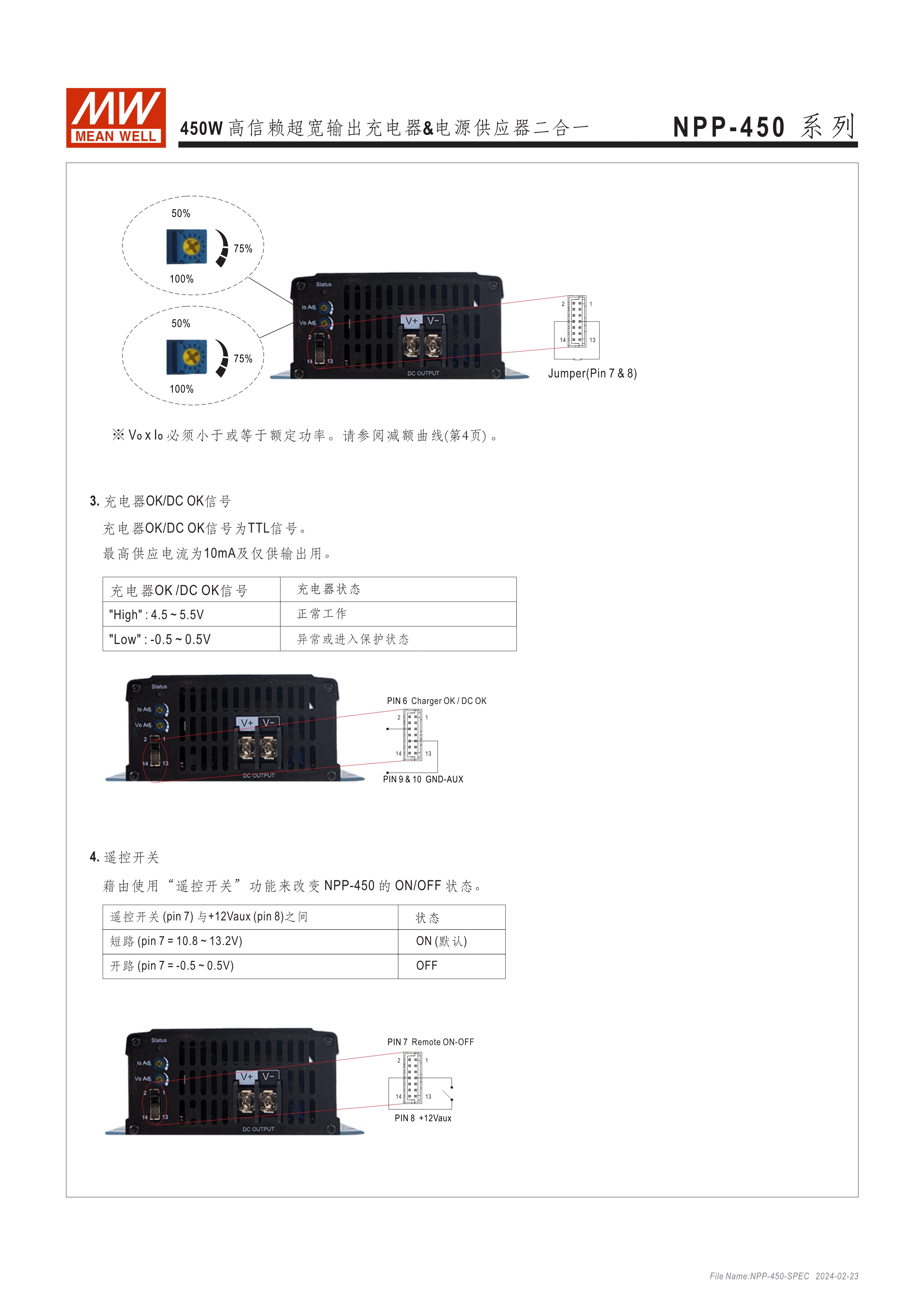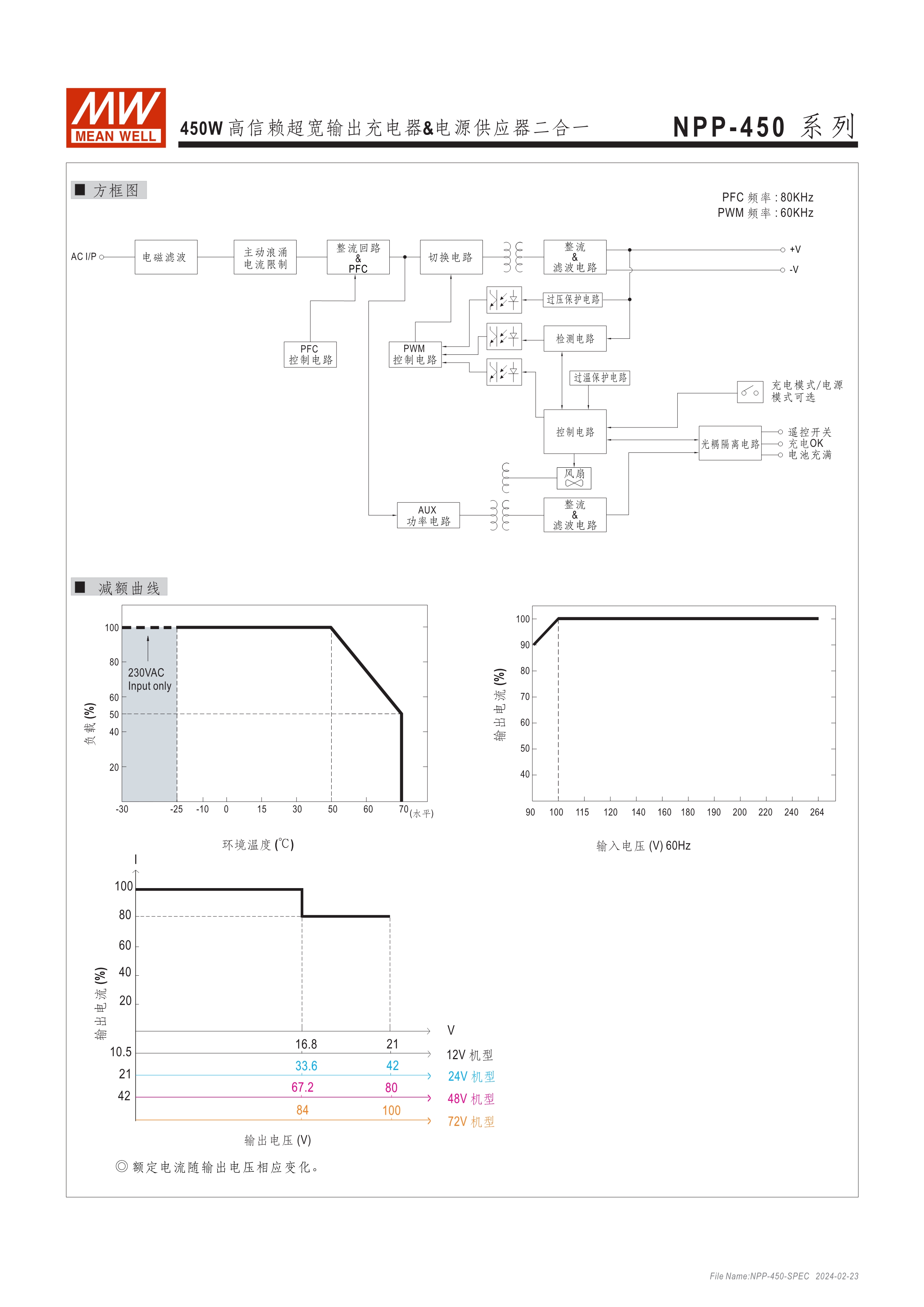 可彈性切換充電器或電源供應(yīng)器 3段式充電,僅適用鉛酸電池 可調(diào)輸出電壓 [由面板VR可調(diào)整10.5~21V, 21~42V, 42~80V, 54~100V(僅NPB-450)] 可調(diào)輸出電流 (由面板VR調(diào)整50~100%) -30~+70oC寬溫度,使用環(huán)境受限少 保護功能:短路、過壓、過溫度 可另購手提把手 (Order No.: Carry Handle) 通過UL/EN62368-1、IEC/EN62368-1/-2-29雙安規(guī)認(rèn)證 3年保固