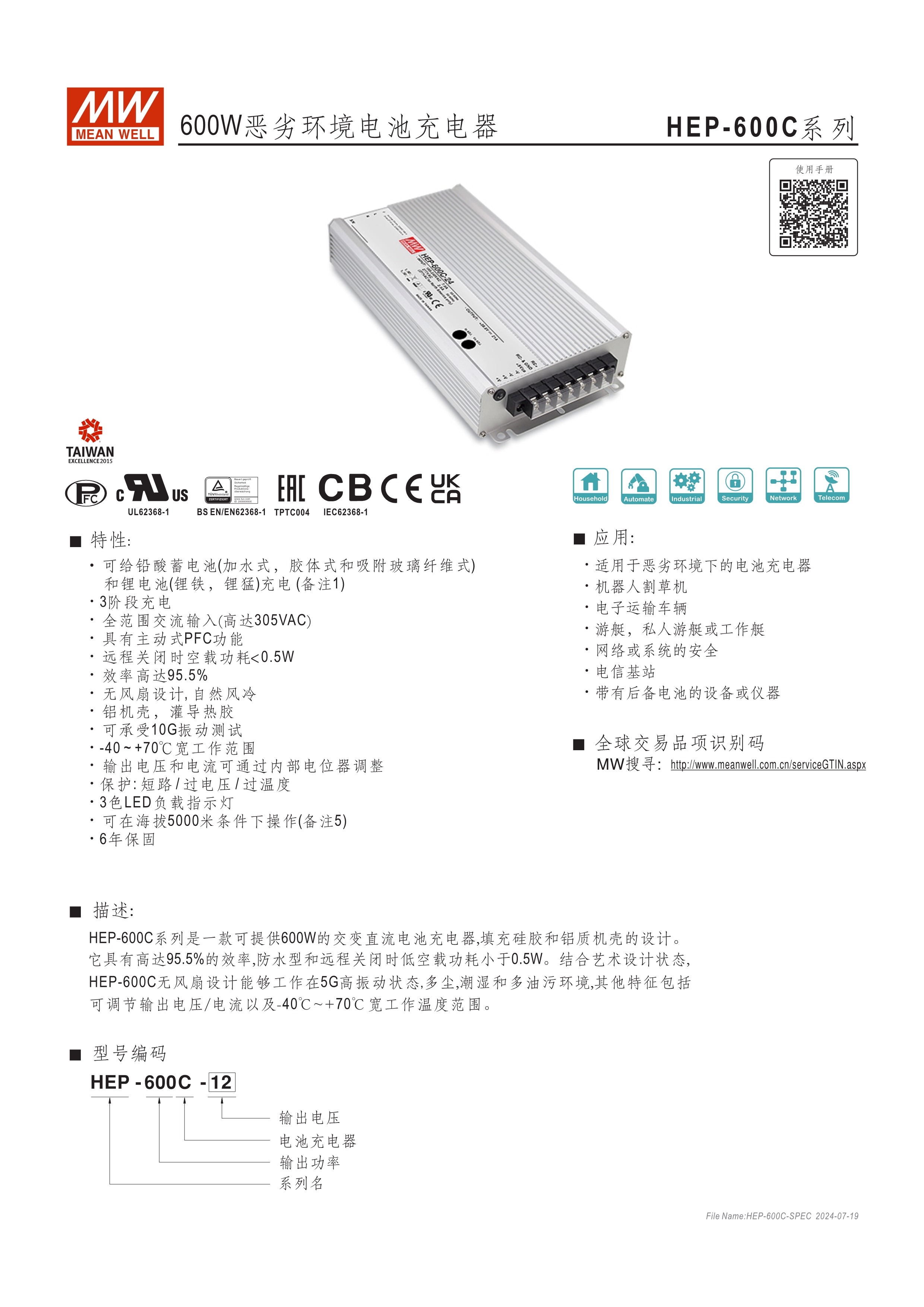 鋁殼、無(wú)風(fēng)扇、內(nèi)灌導(dǎo)熱膠 -40~+70oC超寬溫操作溫度 耐震10G 可使用於5000M高海拔 可透過VR調(diào)整充電電壓 (11.5~15.1V, 23~30.2V, 46.1~60.5V) 可透過VR調(diào)整充電電流50~100% 保護(hù)功能:短路、過壓、過溫度 6年保固