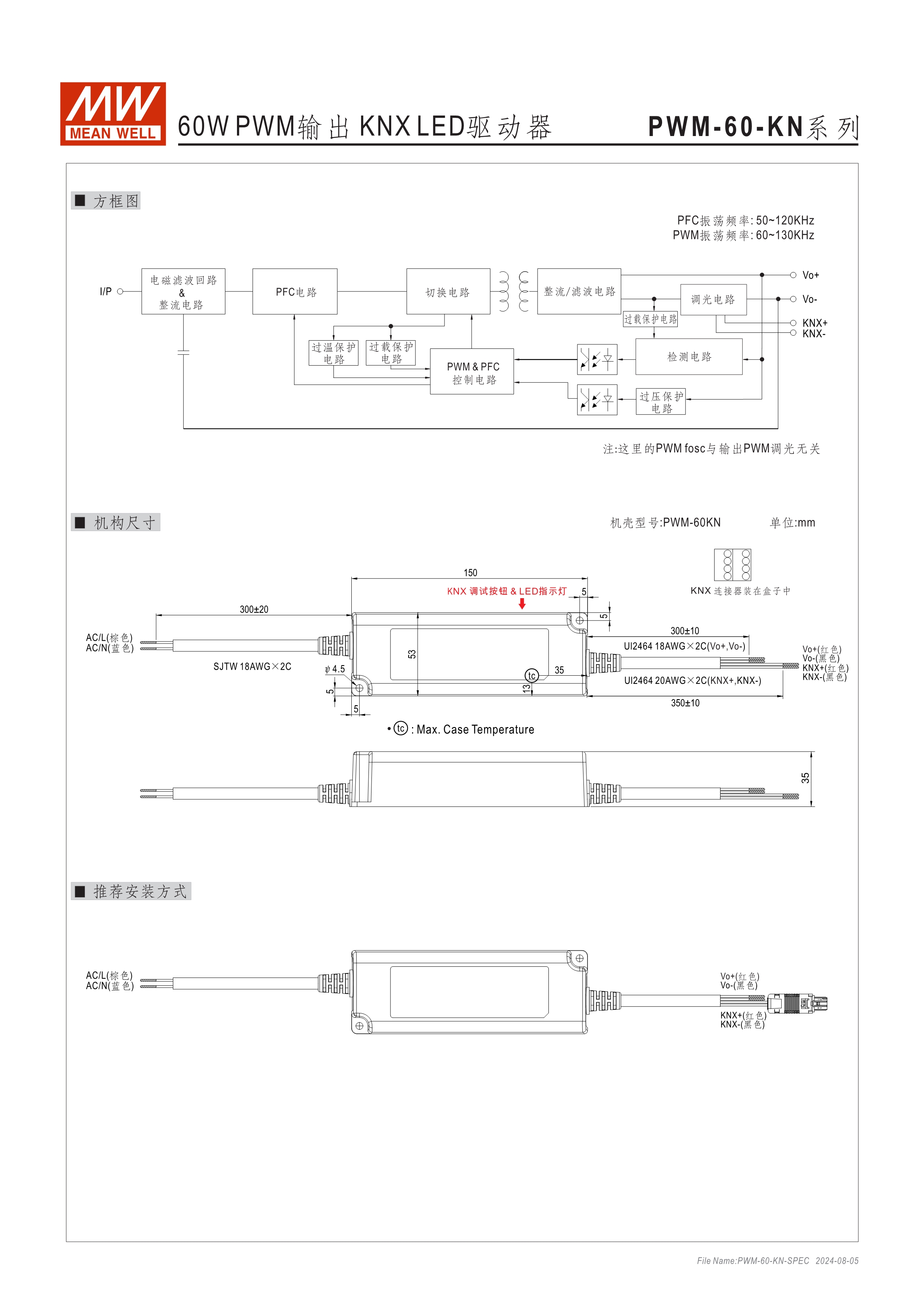 恒壓PWM型式輸出,用戶可調(diào)整工作頻率高達(dá)4KHz 內(nèi)建主動(dòng)式PFC 功能 空載功耗<0.5W/待機(jī)功耗<0.5W 整合KNX控制接口 不須KNX-DALI 網(wǎng)關(guān)