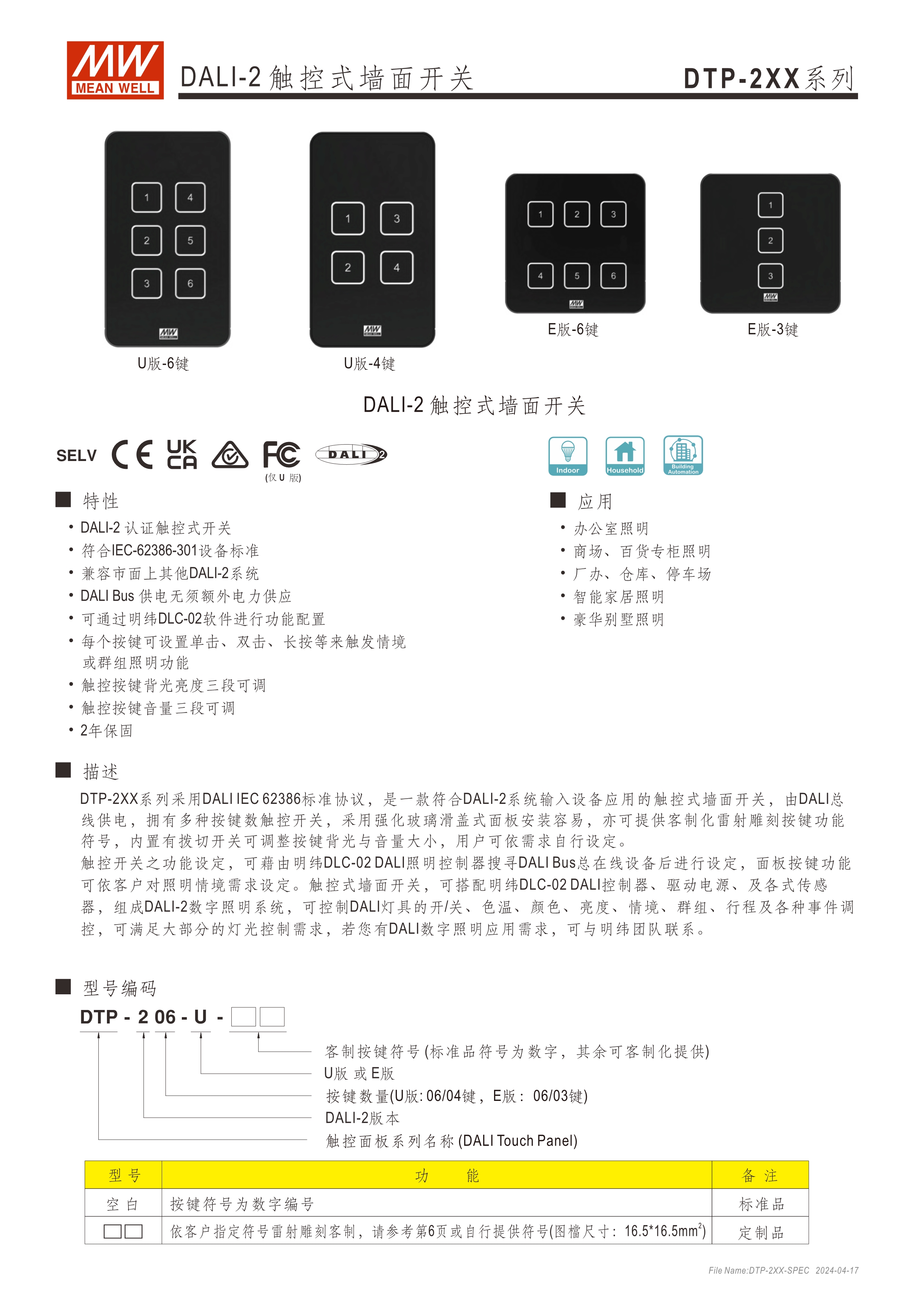 DALI-2 認(rèn)證觸控式開關(guān) 符合IEC-62386-301標(biāo)準(zhǔn)設(shè)備 DALIBus供電無須額外電力供應(yīng) 每個(gè)按鍵可設(shè)置單擊、雙擊、長按等來觸發(fā)情境或群組照明功能