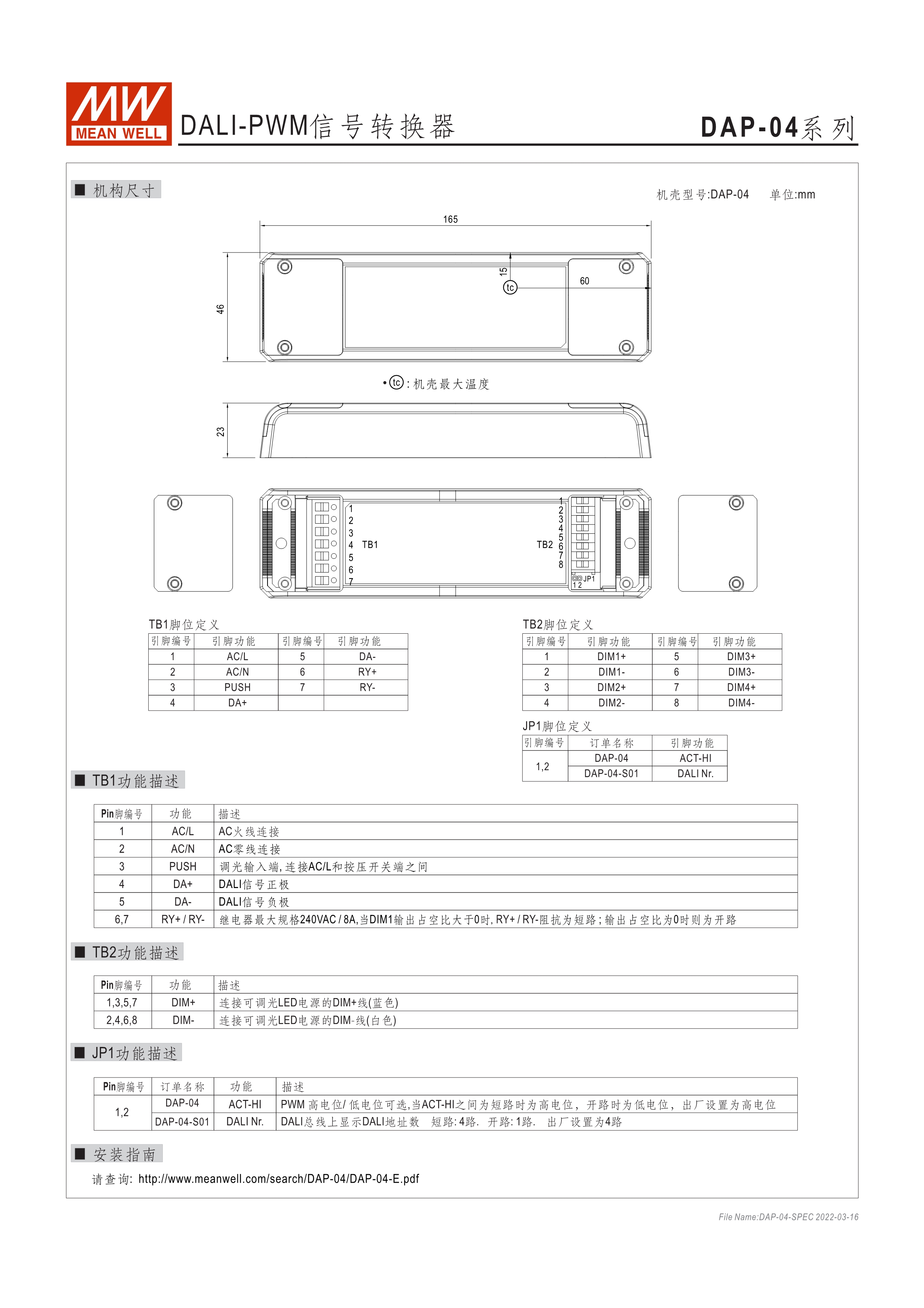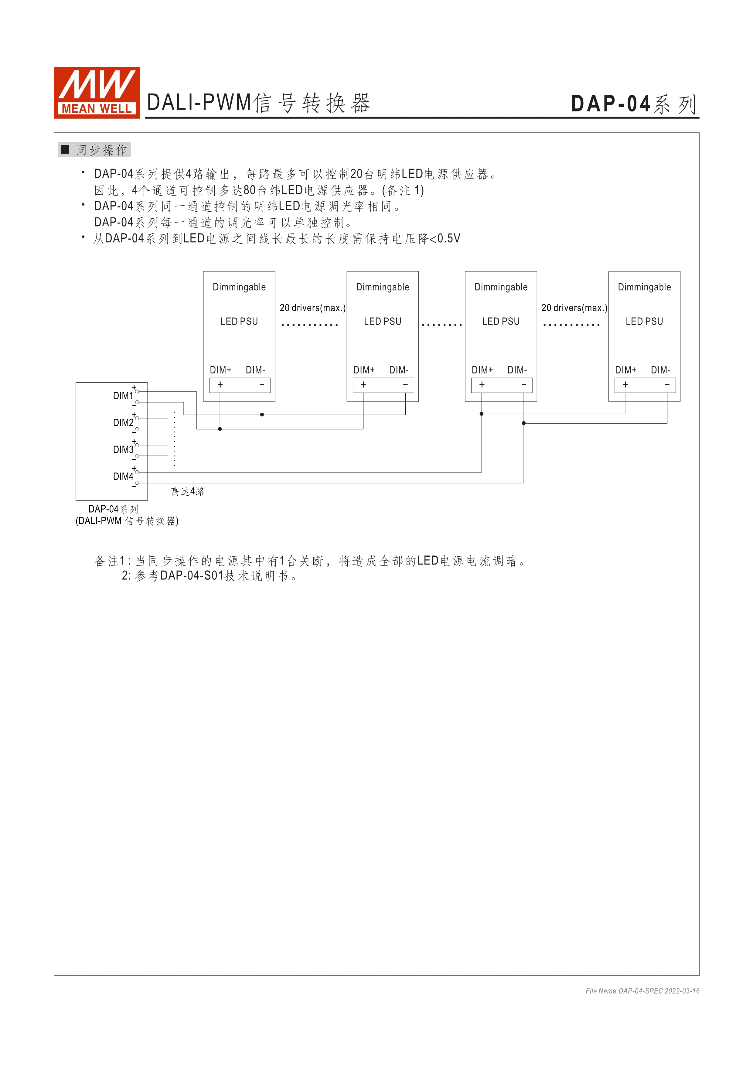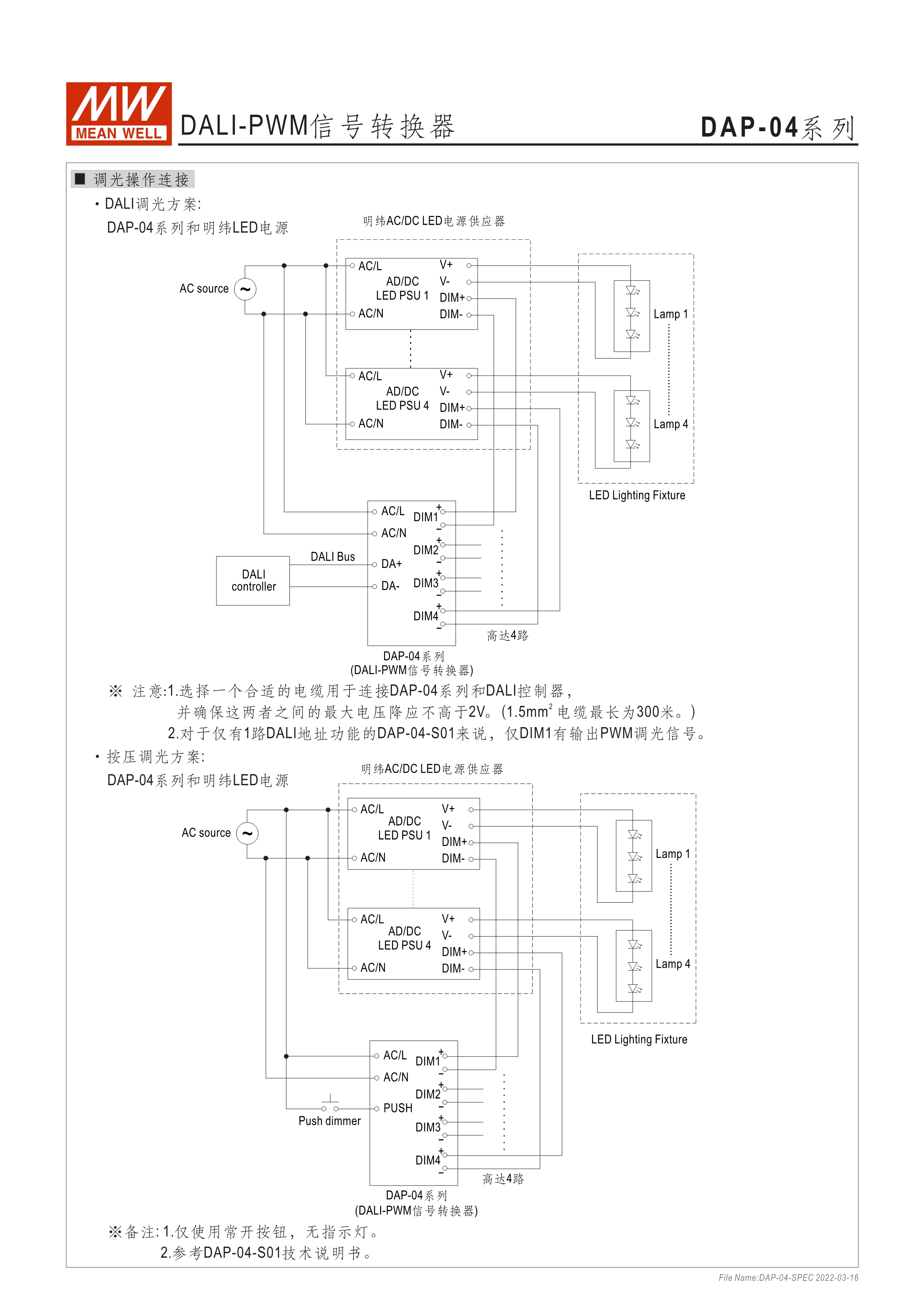 90~305VAC交流輸入 DALI訊號轉(zhuǎn)換為PWM訊號 4組DALI可尋址輸出通道 符合DALI標準(IEC62386-101, 102, 207) 適合與明緯具3合1調(diào)光功能之AC/DC LED電源供應器搭配使用