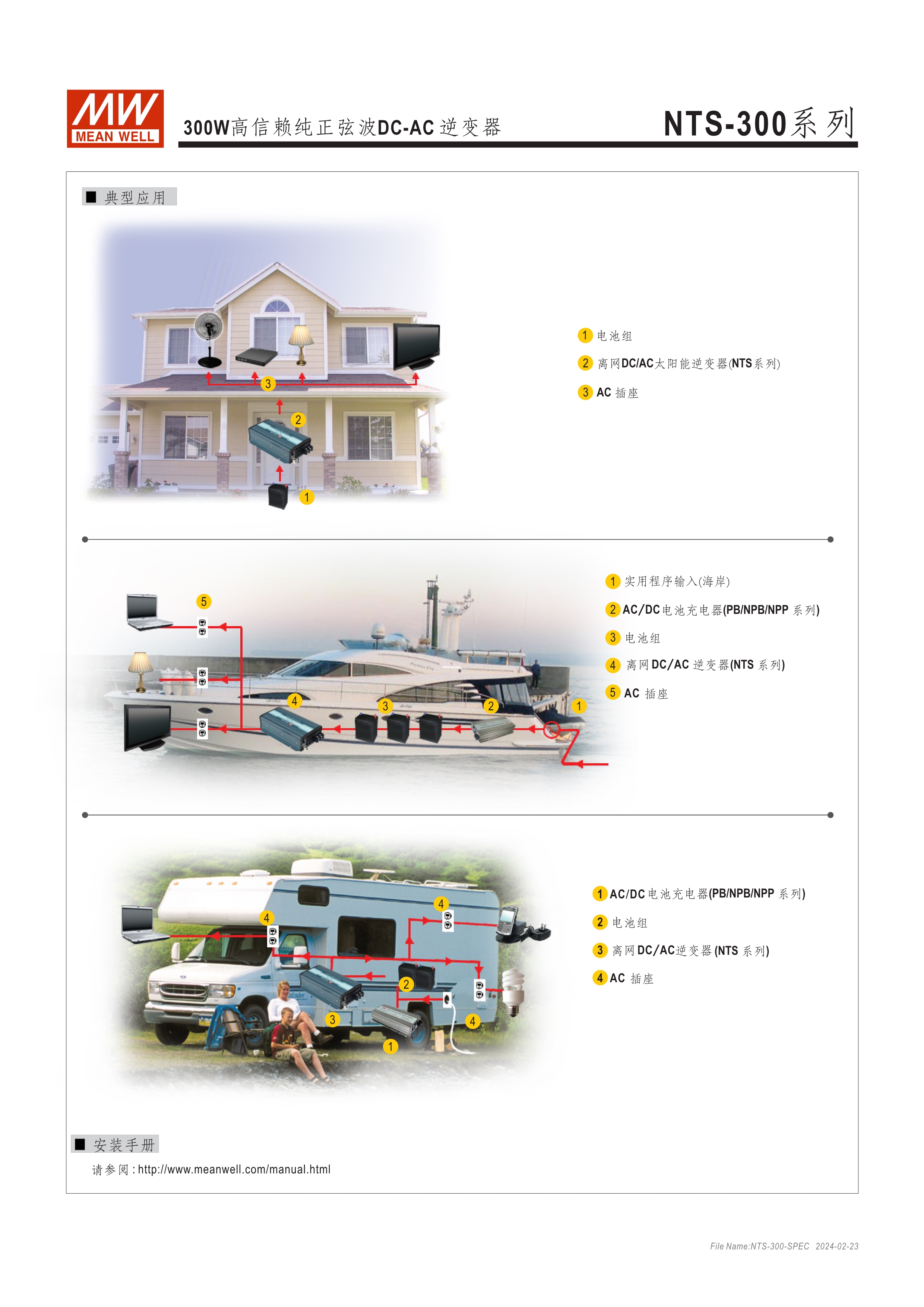 DC-AC純正弦波輸出 (THD<3%) 無風(fēng)扇設(shè)計(jì),效率最高達(dá)93%,可自然風(fēng)冷散熱 內(nèi)建DIP S.W可彈性自調(diào)AC輸出電壓、頻率、節(jié)能模式 多重智能保護(hù)功能: DC輸入側(cè) - 極性反接、電壓過低、電壓過高保護(hù) AC輸出側(cè) - 短路、超載、過熱保護(hù)