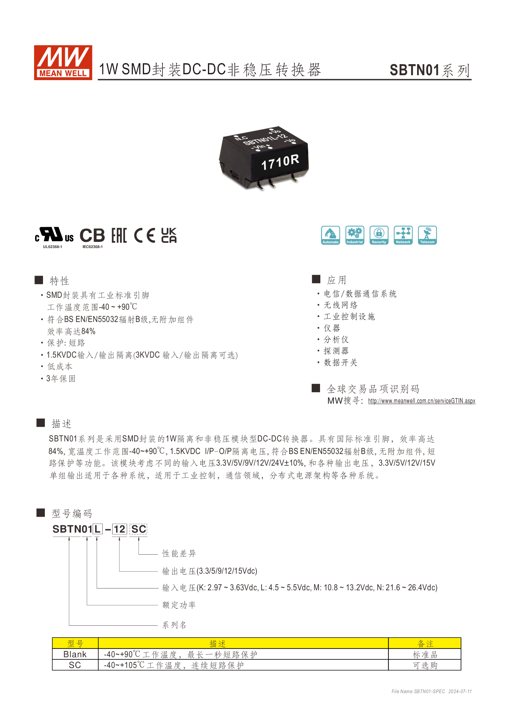 模塊型快選表 SMD型 擁有單組及雙組輸出機種