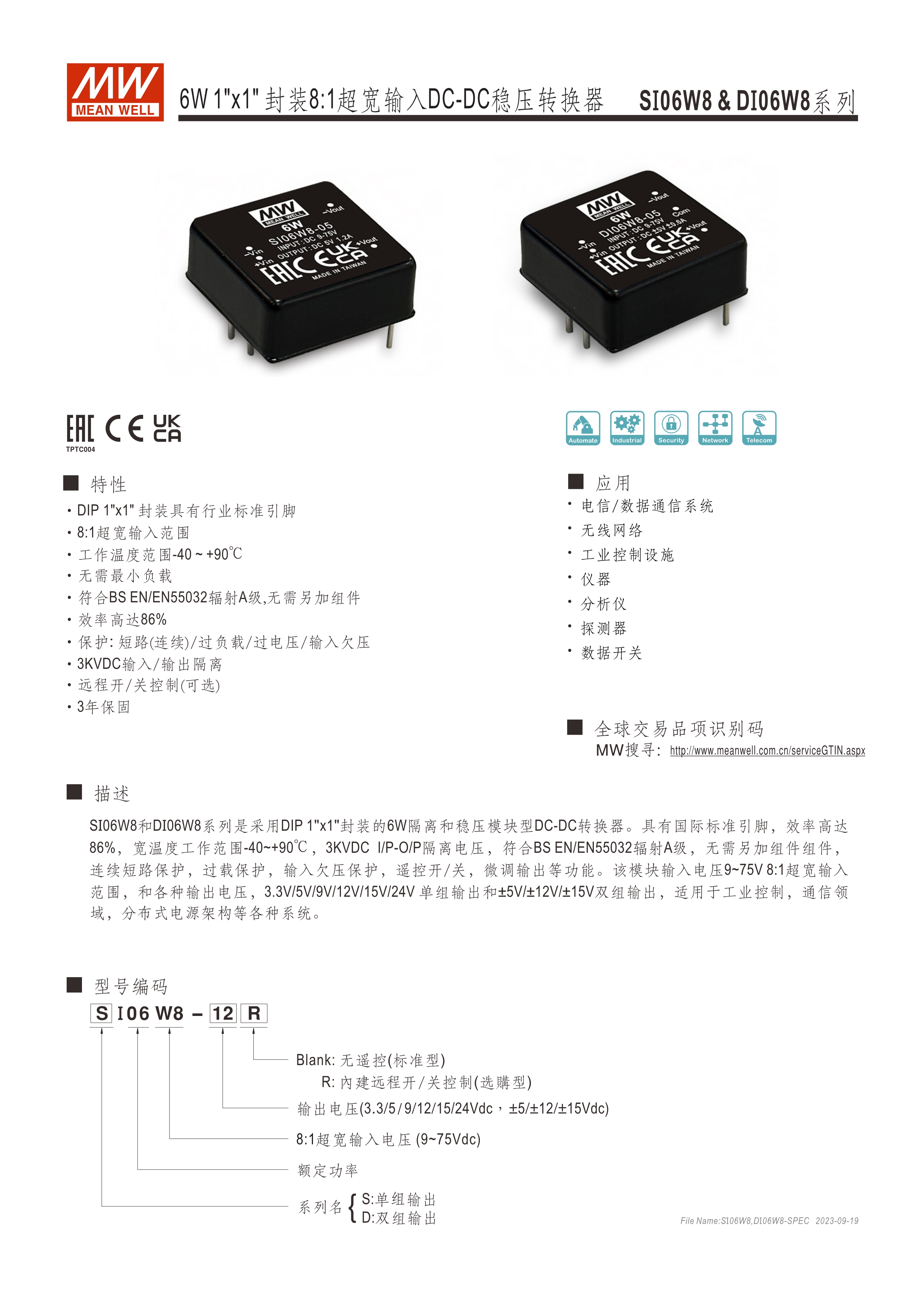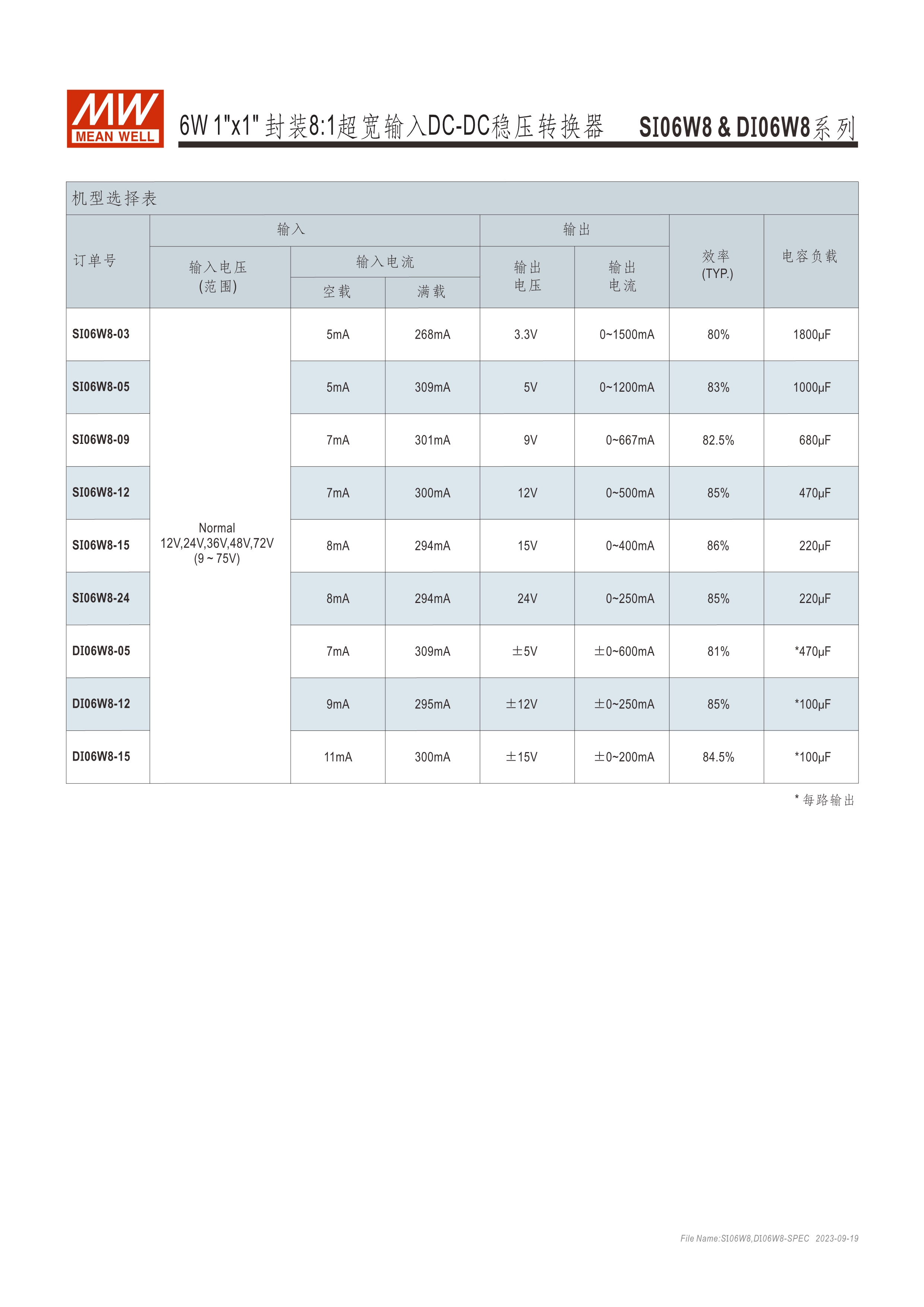 模塊型快選表 DIP封裝 輸入/輸出隔離—1.5KVDC 擁有單組輸出機(jī)種 遙控功能, ±10%輸出調(diào)節(jié)