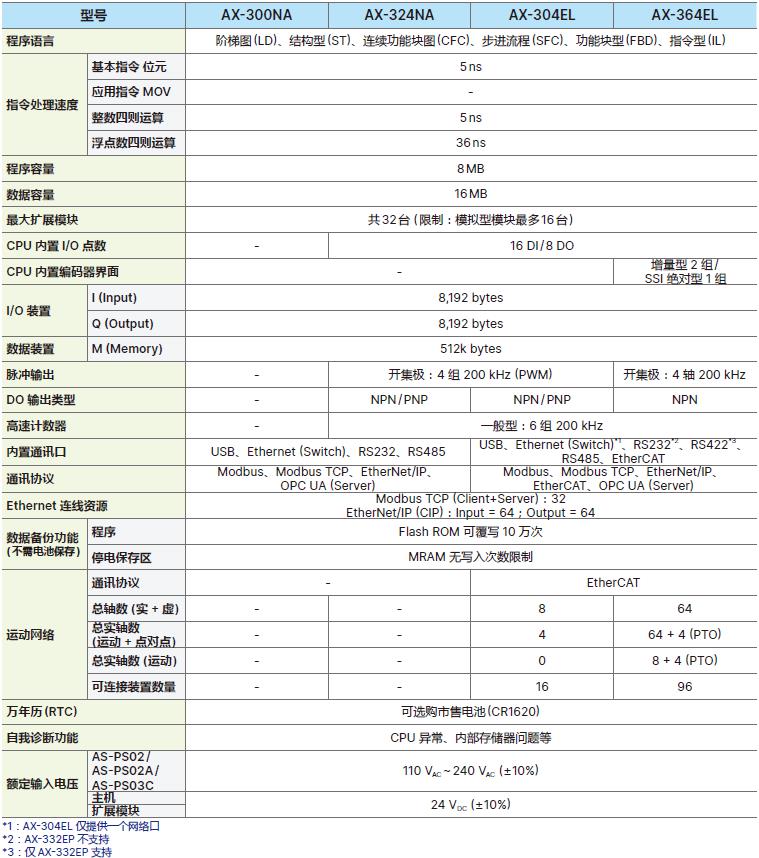 - AX-308E?/?AX-316E?/?AX-332E CPU最高可支持8?/?16?/?32軸EtherCAT (AX-332E 同步時間最快 1ms@32軸)